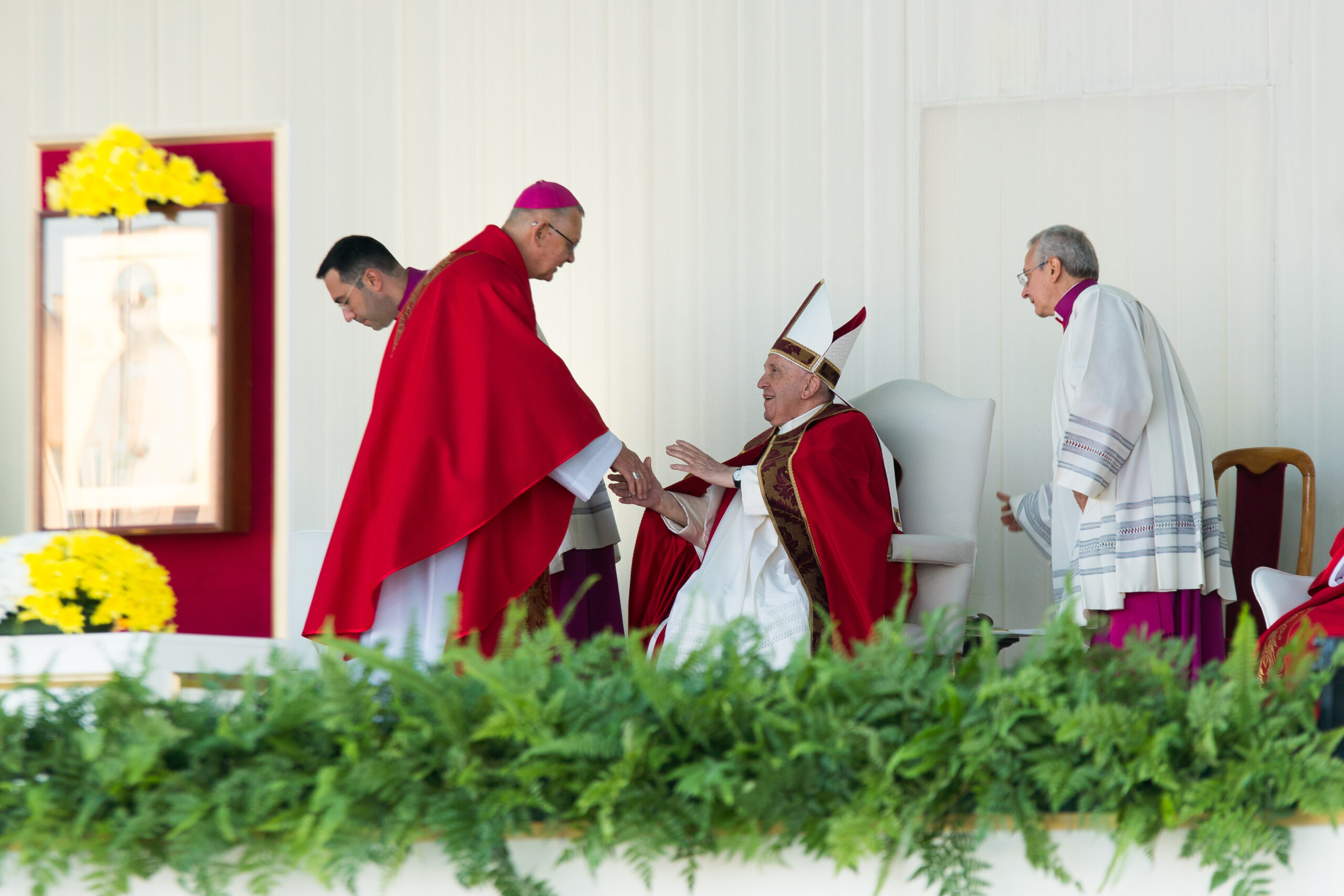Pope Francis and the Archbishop during Holy Mass at EXPO area in Astana, during the Pope’s state visit to Kazakhstan in 2022. Photo credit: Catholic Information Service of Central Asia