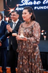 The Rotary Club has collaborated with Zamandas-21 for several years. This year’s Rotary Ball featured a charity auction where signature items were auctioned with the support of over 20 partner organizations. The items included Dimash Kudaibergen’s dombyra, which was eventually sold for four million tenge (US$7,840), boxing gloves from Gennadiy Golovkin and Daniyar Yeleussinov, and memorabilia from other cultural figures.