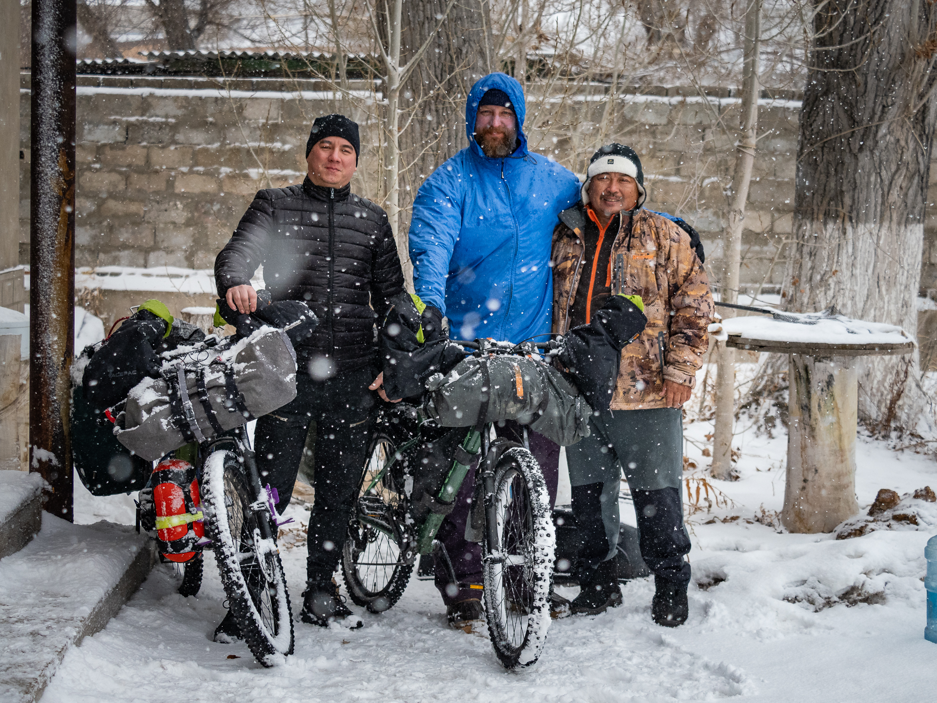 After pushing the bikes for around 40-60 kilometers on a thick snow layer, they had to abandon the idea of cycling through Balkhash.