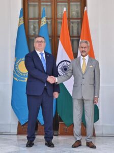Kazakh Deputy Prime Minister and Foreign Minister Murat Nurtleu with India’s Minister of External Affairs Subramanyam Jaishankar. Photo credit: gov.kz