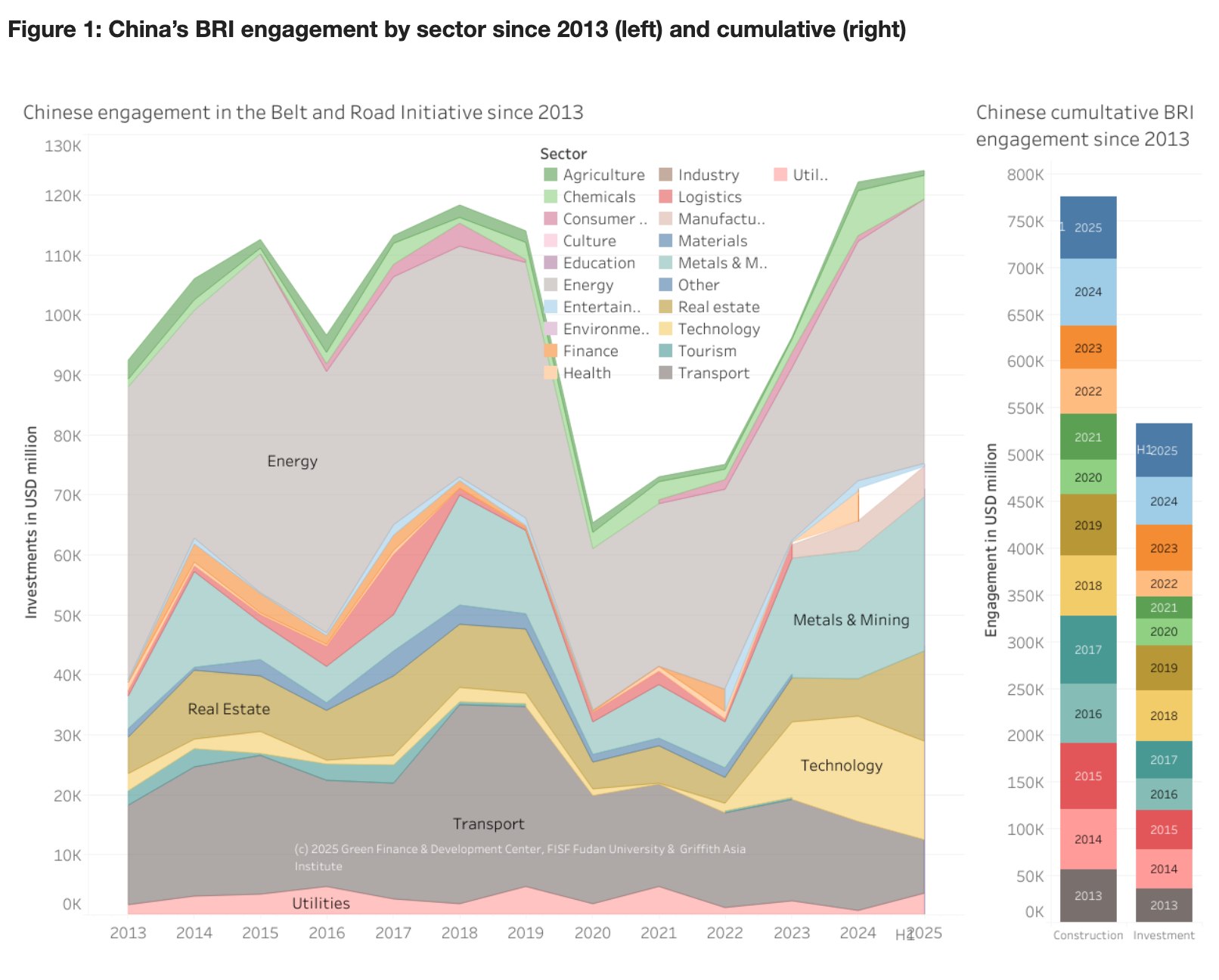 In terms of sectors, the energy, metals and mining, and technology sectors observed growth in the first half of 2025 compared to the same period last year. The report noted that the focus of BRI international engagement remains in energy (35%).