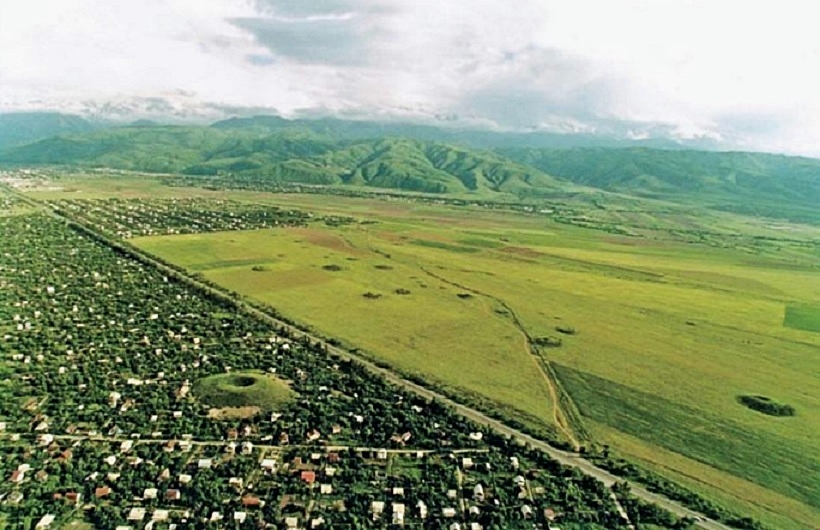 Necropolis of Besshatyr with aerial view of the main kurgans and other annex structures. Photo credit: J. Bendezu-Sarmiento / books.openedition.org