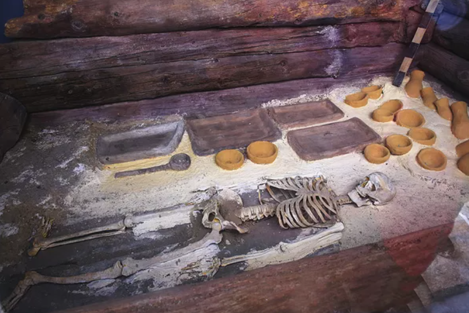 Excavations at Besshatyr revealed two skeletons buried with akinaks (iron daggers), quivers containing bronze arrowheads, and decorative elements, including cornelian and gold-beaded ornaments. According to working documents submitted to the World Heritage Center, architectural details, such as trapezoidal stone embankments and entry chambers, suggest that the tombs were used ceremonially for memorial rites. These elements reflect complex funerary customs and the high status of those buried, likely Saka elites.