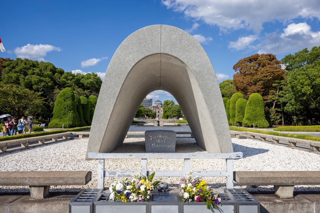 The Hiroshima Victims Memorial Cenotaph to the Atomic Bomb Dome,, in Hiroshima, Japan on 29 September 2024. Photo credit: Shutterstock.