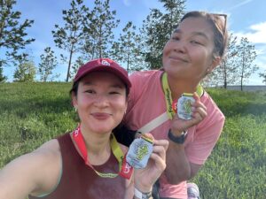My colleague Aibarshyn (L) and I after finishing the race on Aug. 10. Photo credit: personal archive
