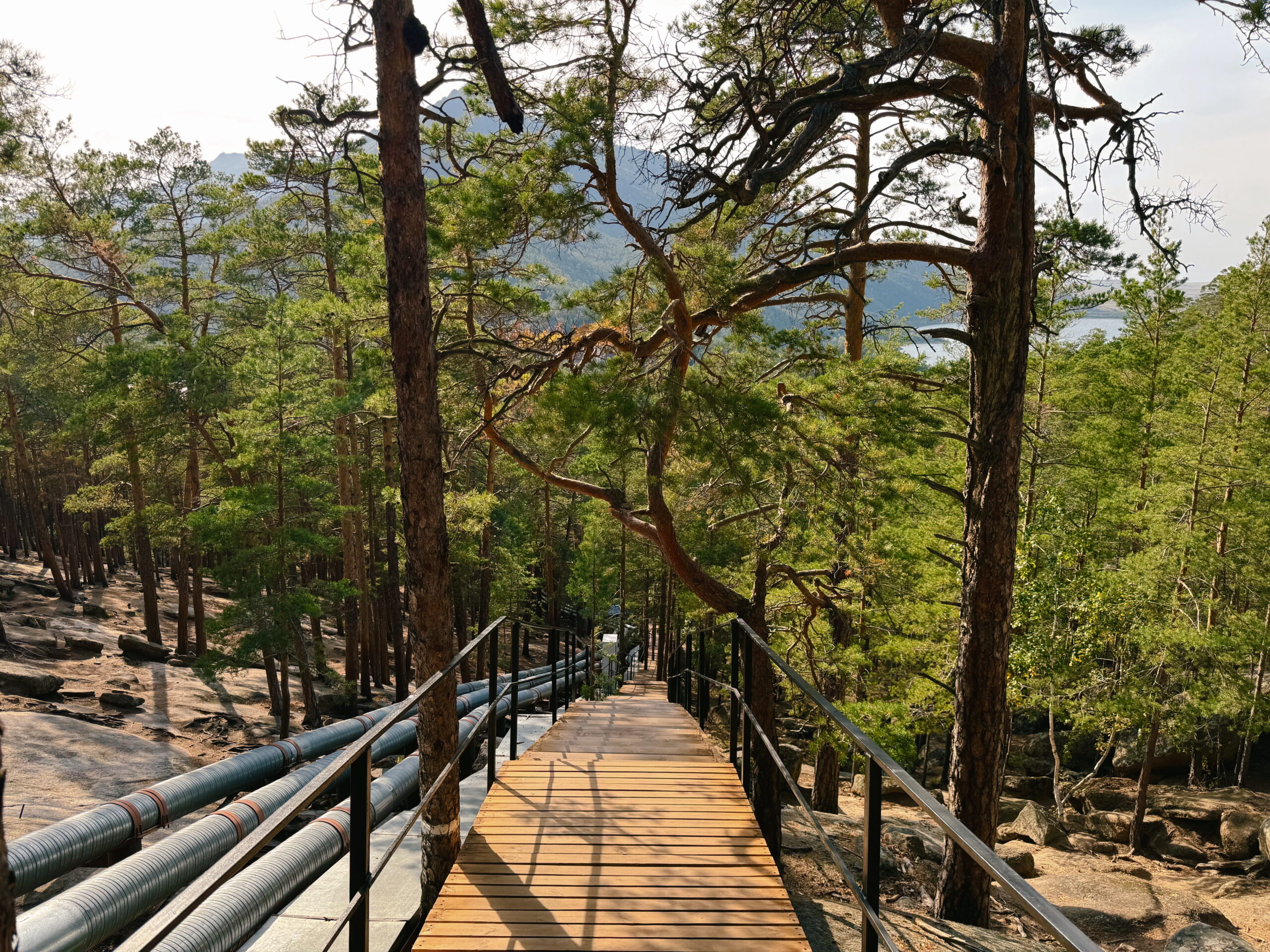 Many tourists enjoy strolling along the ridge of Bolektau to take photos, observe nature, or simply spend time amidst the tall trees in such a magnificent setting.