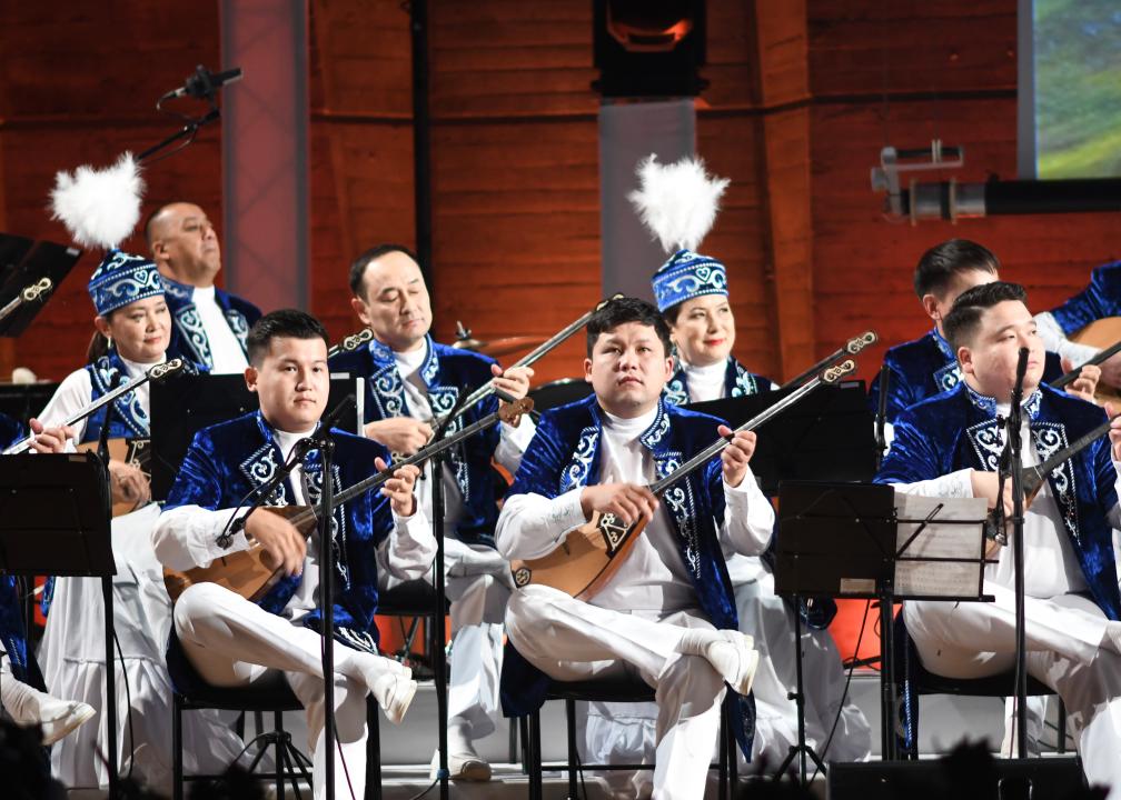The Otyrar Sazy Orchestra, founded by Tlendiyev and now led by his daughter, Dinzuhra Tlendiyeva, performed his most celebrated works. They were joined on stage by renowned Kazakh artists.