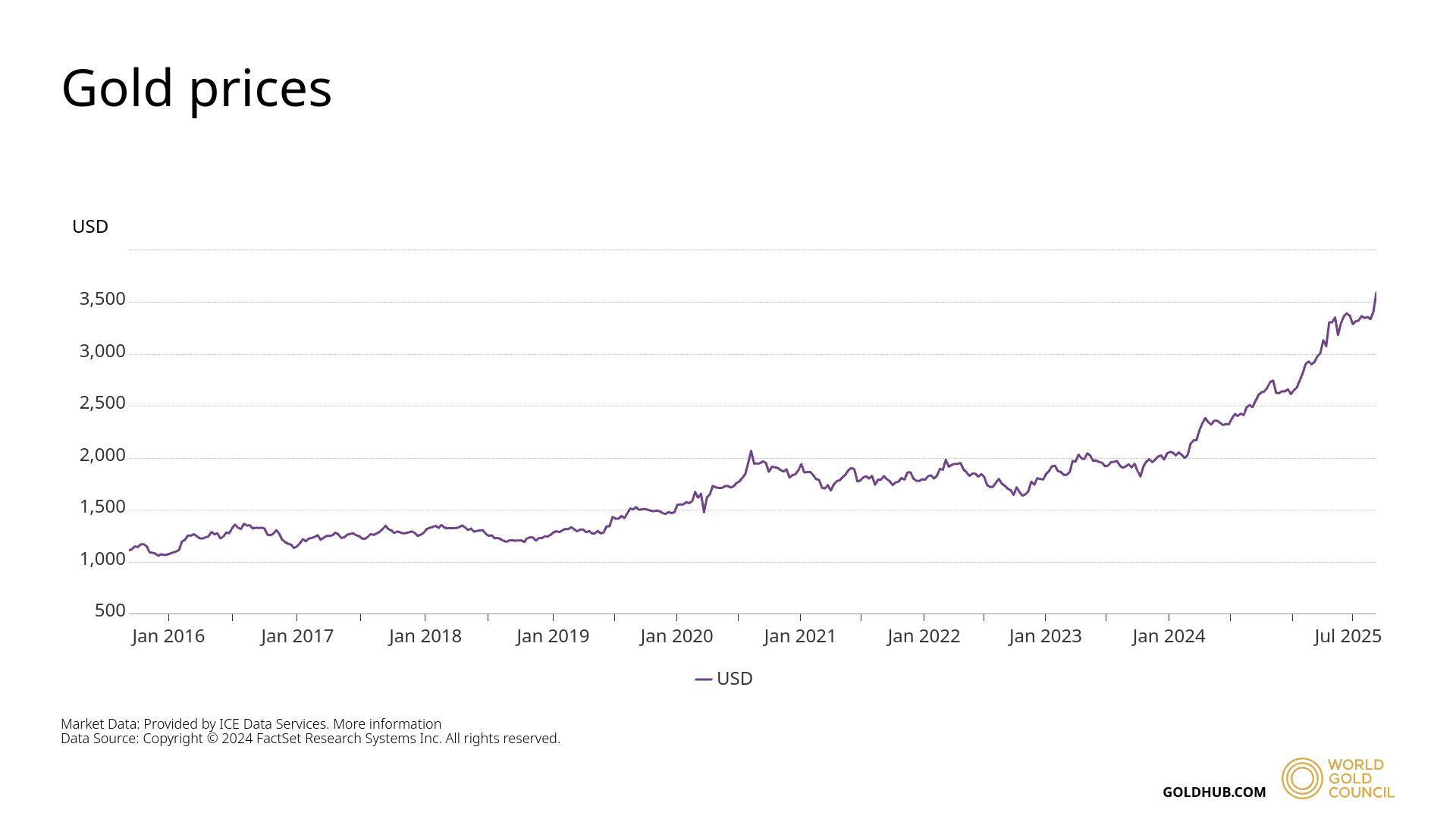 Gold prices in a 10-year period. Photo credit: World Gold Council