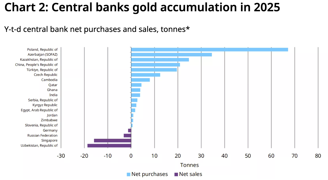 According to the World Gold Council, central banks account for approximately one-fifth of all the gold mined throughout history. In 2024, for example, central banks purchased 1,045 tons of gold. The National Bank of Poland was the largest gold buyer last year, adding 90 tons to its gold reserves.
