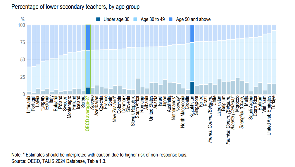 The average weekly workload for Kazakh teachers is now 36 hours, down from 50 hours in 2018, one of the sharpest reductions among OECD countries.