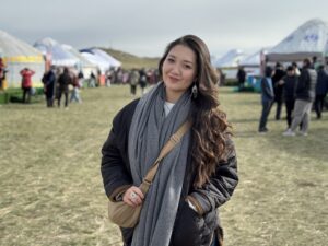 The Astana Times reporter Nagima Abuova at the Shygys Salburyny international festival on Oct. 11. Photo credit: Assel Satubaldina / The Astana Times