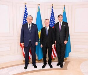 (L-R) Yermek Kosherbayev, Sergio Gor and Christopher Landau. Photo credit: Kazakh Foreign Ministry.