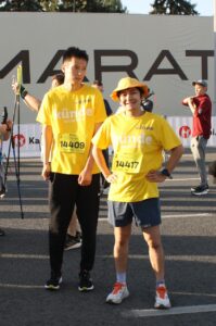 Akhmetov and the team participate in various activities, such as running the Almaty Marathon. Photo credit: Murat Bimamirov