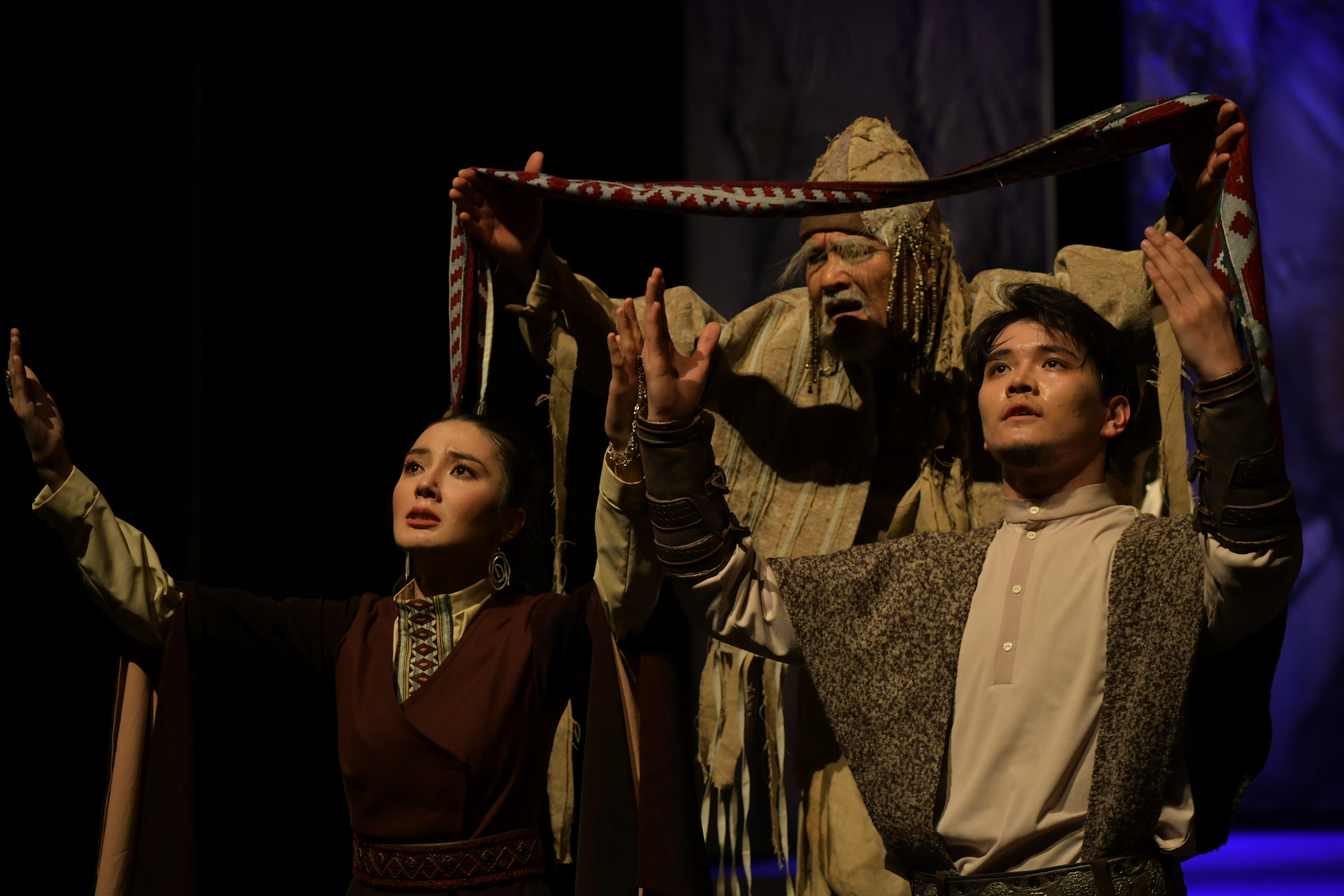 An excerpt from a modern staging of “Enlik–Kebek” at the Mukhtar Auezov Kazakh National Drama Theatre. Photo credit: auezov-theatre.kz