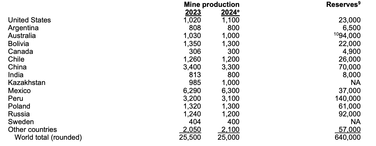 In 2024, global silver production also declined. According to the U.S. Geological Survey, global silver mine production went down to an estimated 25,000 tons from 25,500 tons in 2023.