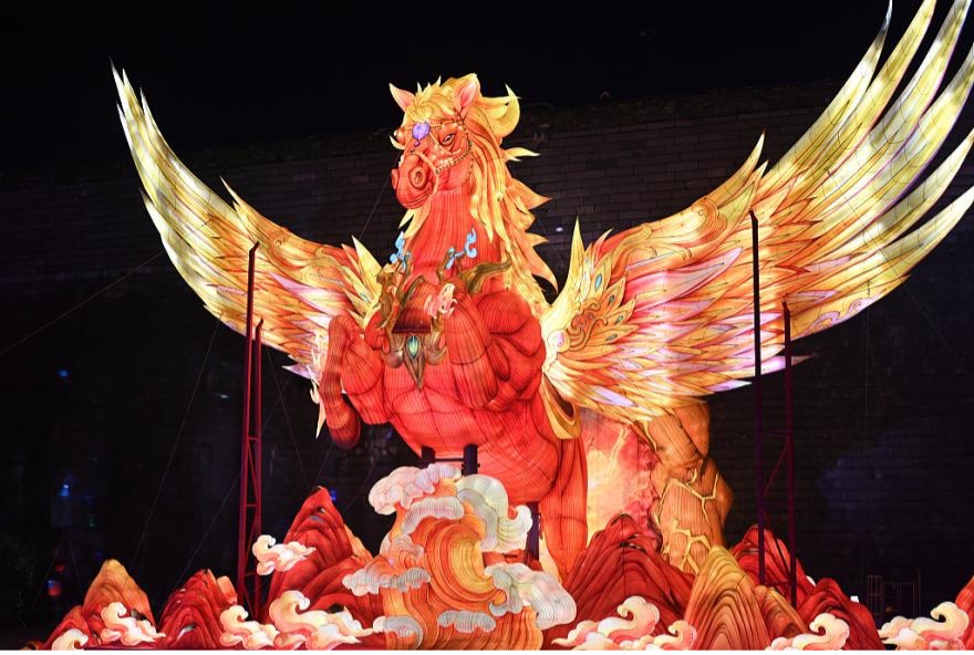 Giant horse-shaped lantern at Laomendong Scenic Zone, Nanjing, Jiangsu Province, lights up celebrations for the upcoming Year of the Horse, January 15, 2026. Photo credit: VCG.