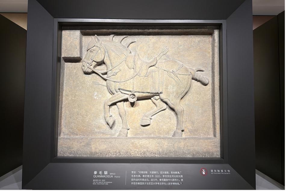 A stone relief depicting one of Emperor Taizong’s loyal warhorses on display at the Xi’an Beilin Museum in north-central China. The emperor commissioned six such sculptures to honor his warhorses. Photo credit: VCG.