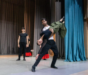 In Astana, Romero is creating choreographic pieces with two student groups at a classical academy. The works incorporate Spanish character dance, elements of danza estilizada, which is a stylized Spanish dance, and rhythmic footwork known as zapateado. The five-day schedule is demanding, culminating in a final presentation.