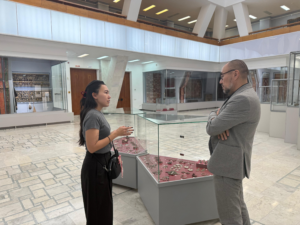 The Astana Times reporter Ayana Birbayeva and Deputy Director of the Kasteev Museum Nurzhan Satybaldy during a conversation. Photo credit: the Astana Times.