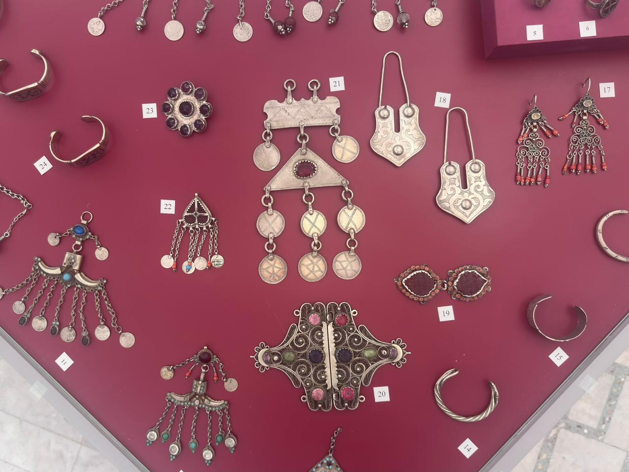 The museum organizes the collection by region, highlighting differences in style, material, and technique. As Bazhenova emphasized, northern and central regions of Kazakhstan favored filigree and intricate chains, while western Kazakhstan produced bold, monumental forms, with southern regions showing influence from Uzbekistan.