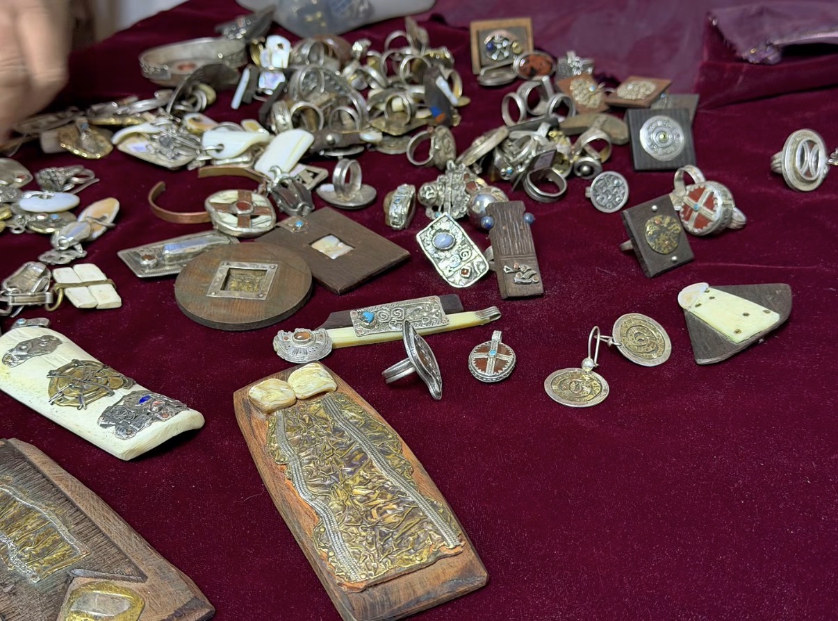 Since his student years, he has gathered jewelry and household objects from nomadic Kazakh culture. His creative process draws on silver, copper, bronze, wood, bone and stone, with each carrying symbolic meaning rooted in nomadic belief systems.