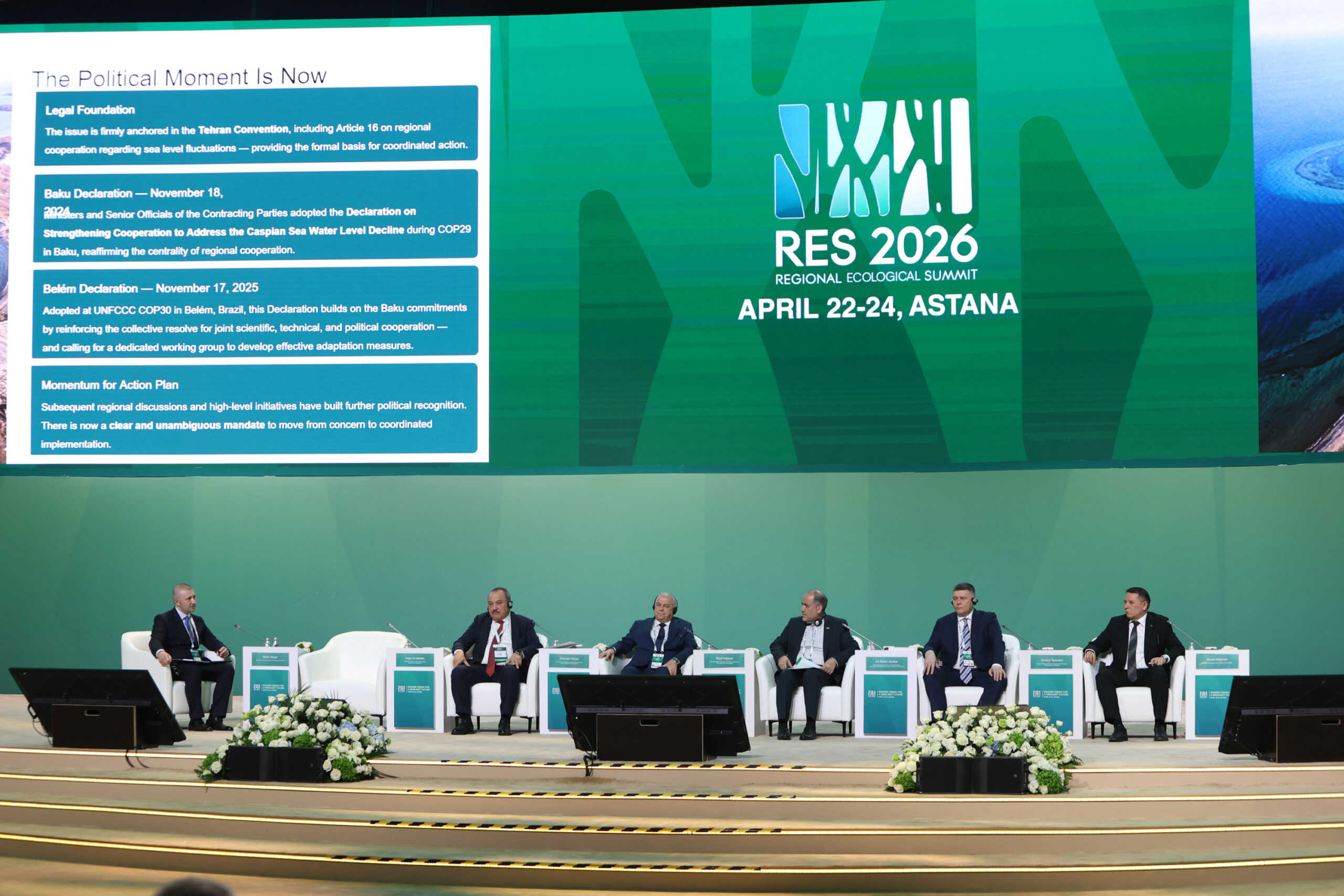 ALMATY – The Caspian Sea has dropped by around two meters since the 1990s, highlighting the scale of environmental challenges facing the region, officials said at an April 23 panel session on the Tehran Convention held as part of the Regional Ecological Summit 2026 (RES)  in Astana.