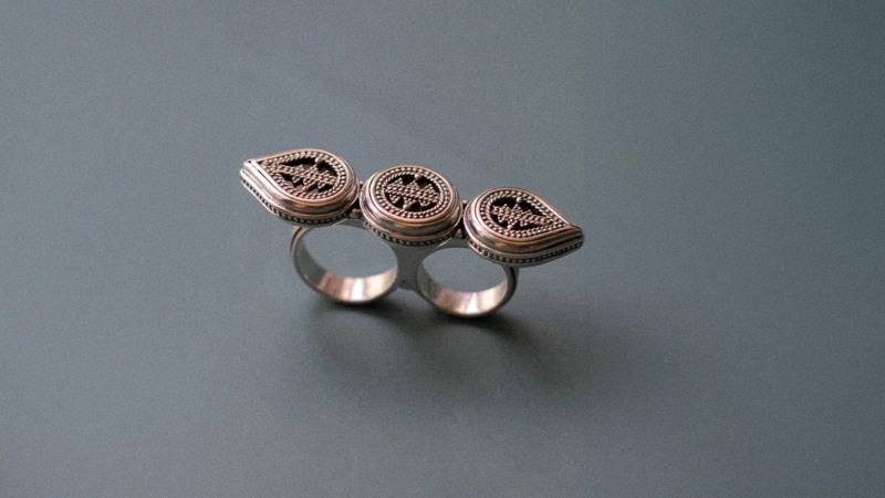 Double ring design with traditional ornamental patterns. Photo credit: Damir Torebai’s personal archives